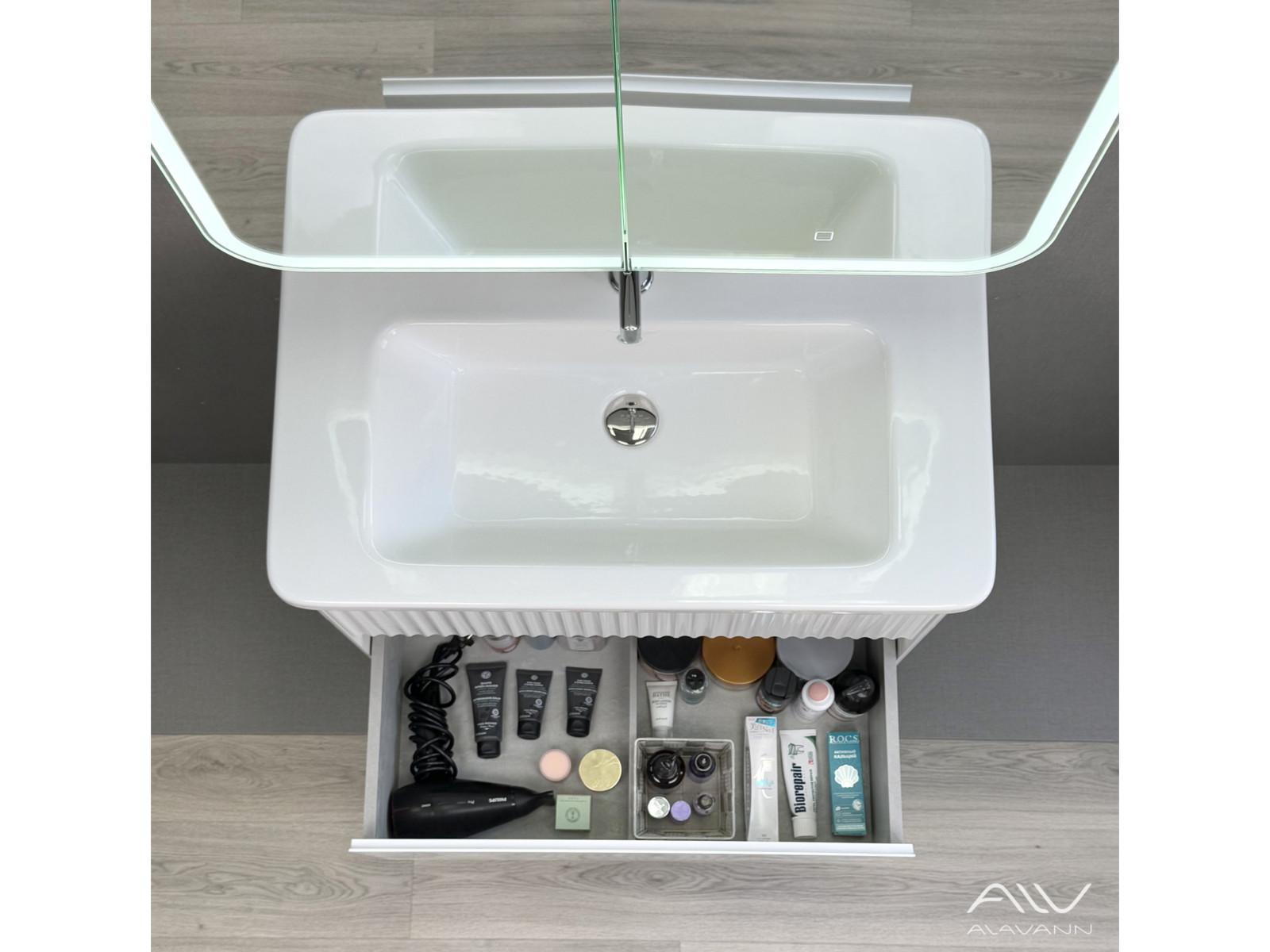 - Тумба с раковиной Wave 80 белая