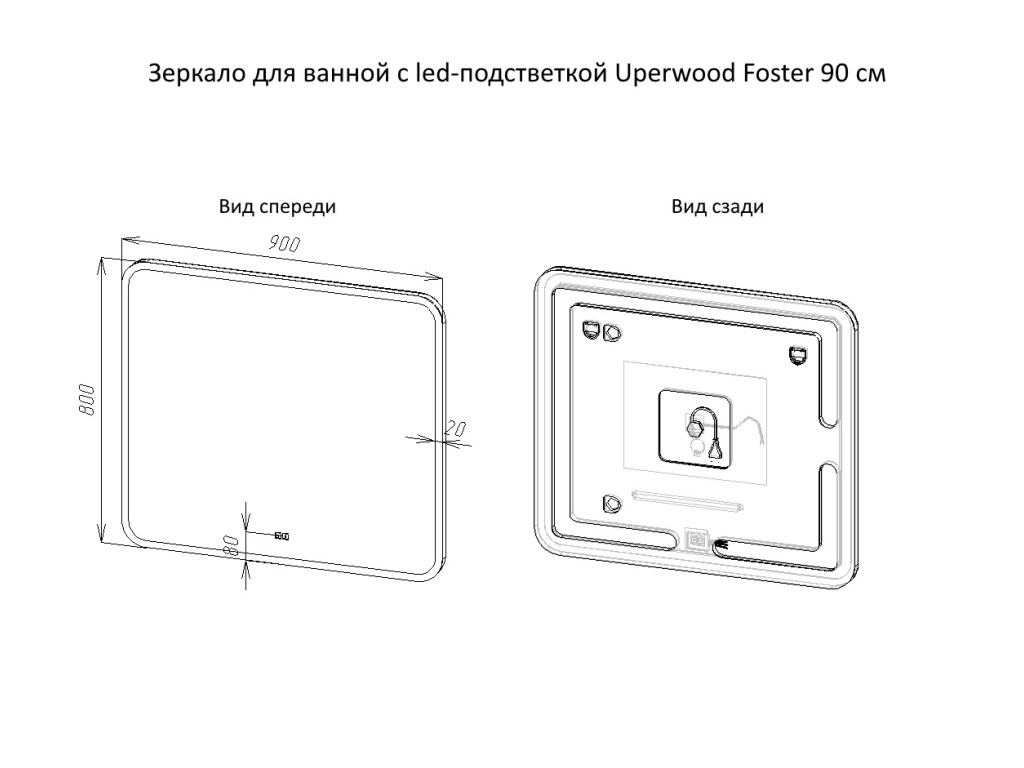 - Зеркало Uperwood Foster LED подсветка 90х80 см