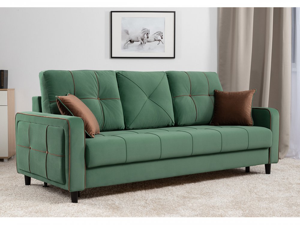 - По торцам подлокотников и думках контрастный декоративный кант.