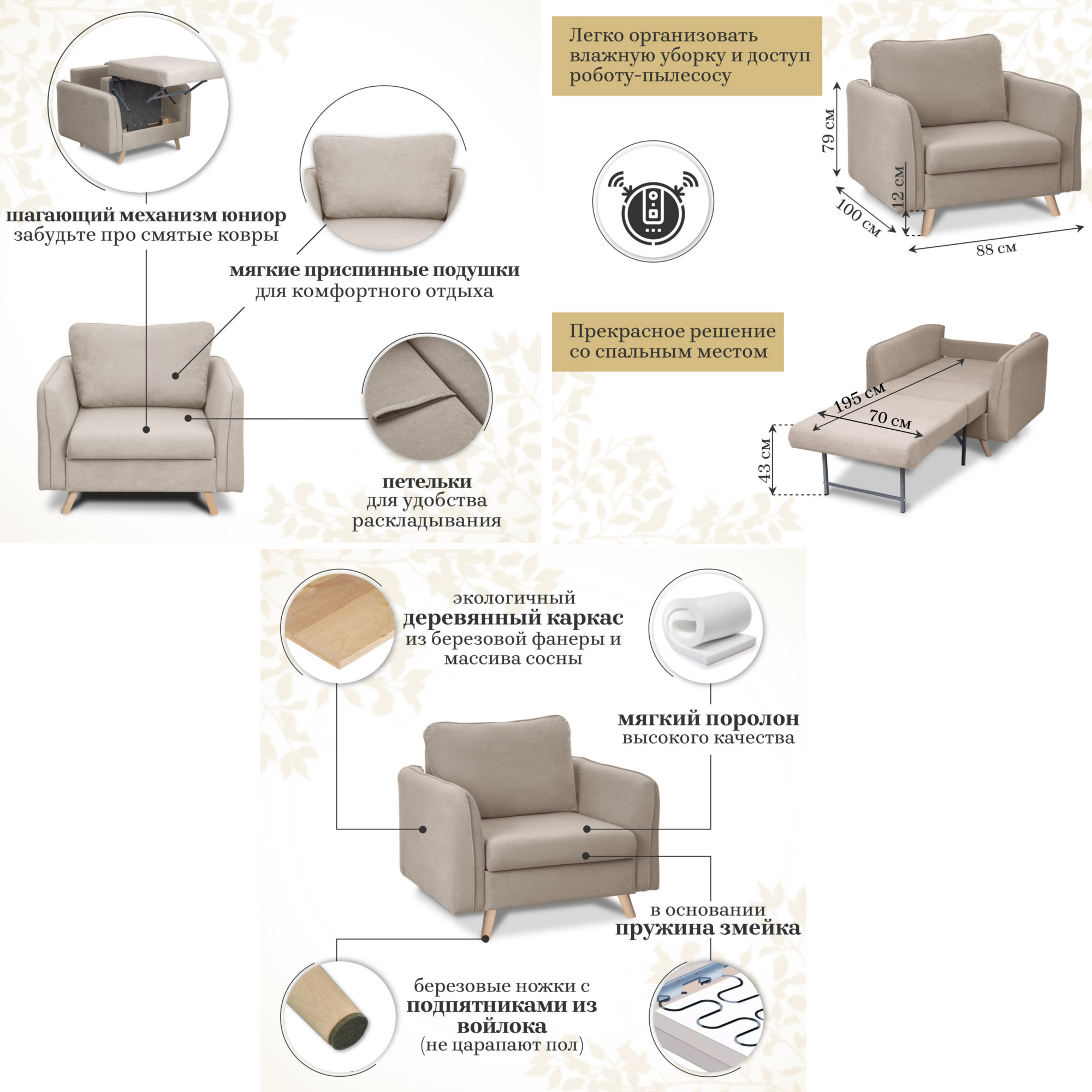 - Спальное место: 700х1950 мм