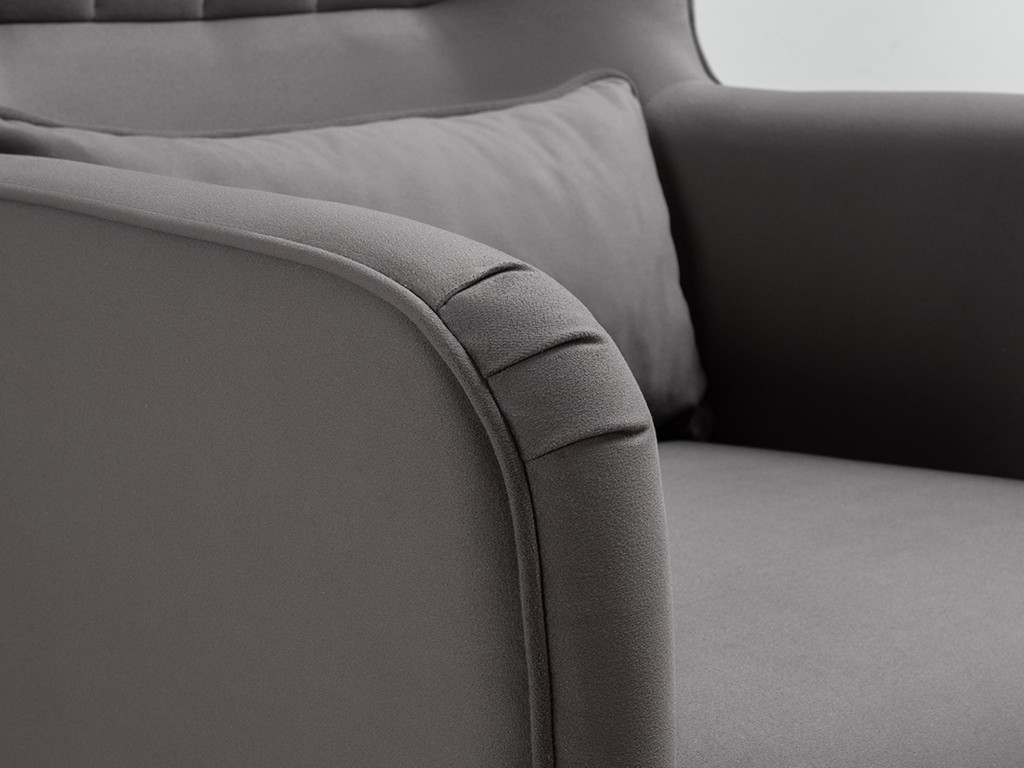 Декор: Вертикальная объемная стежка в средней части спинки; кант на спинке, подлокотниках и декоративной подушке