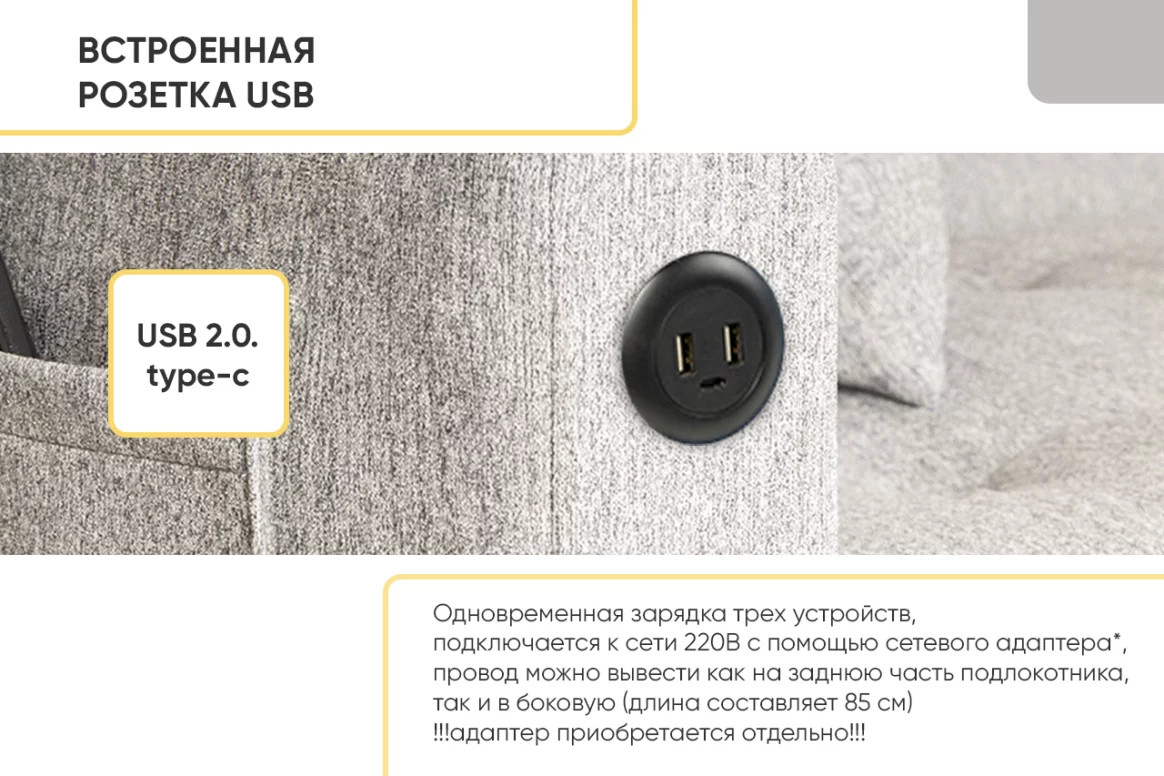 - Диван Аллаки с USB розеткой Серый Tailor 7