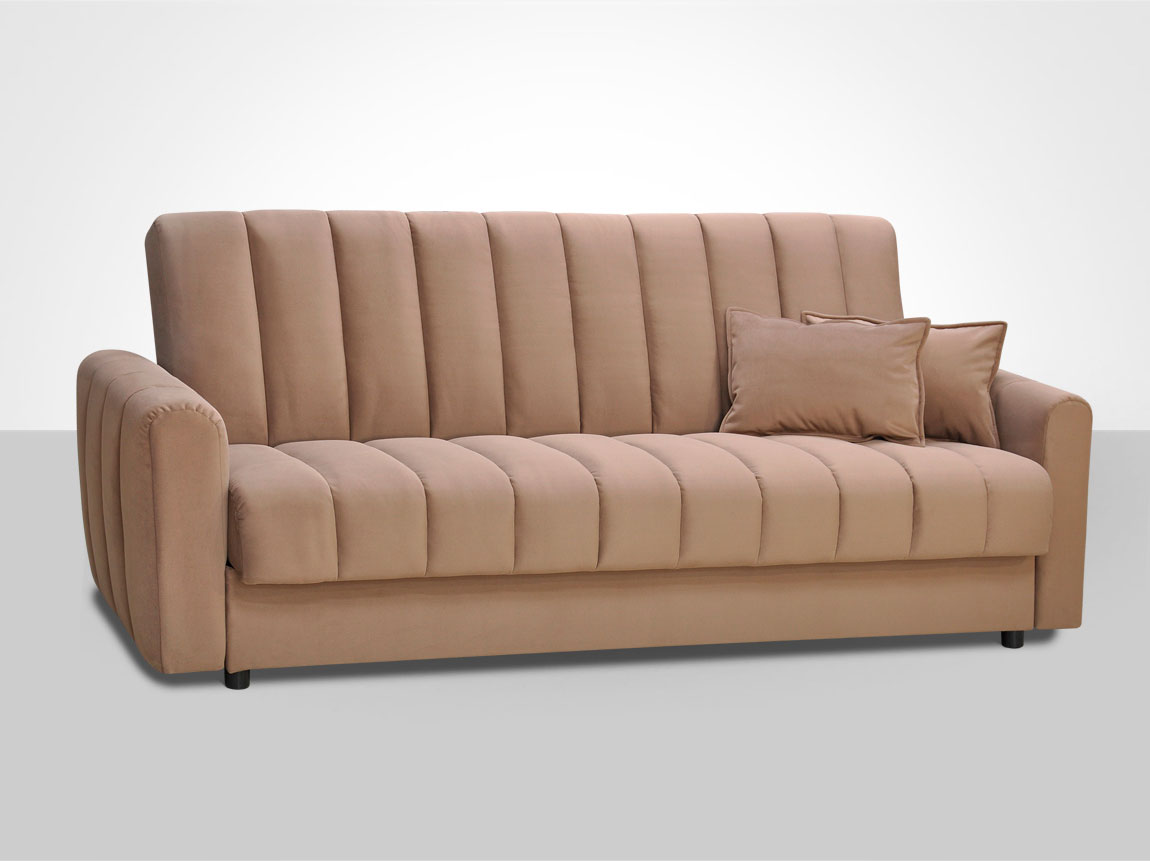 Задняя спинка дивана выполнена в основной обивочной ткани, поэтому его можно поставить даже в центре комнаты.