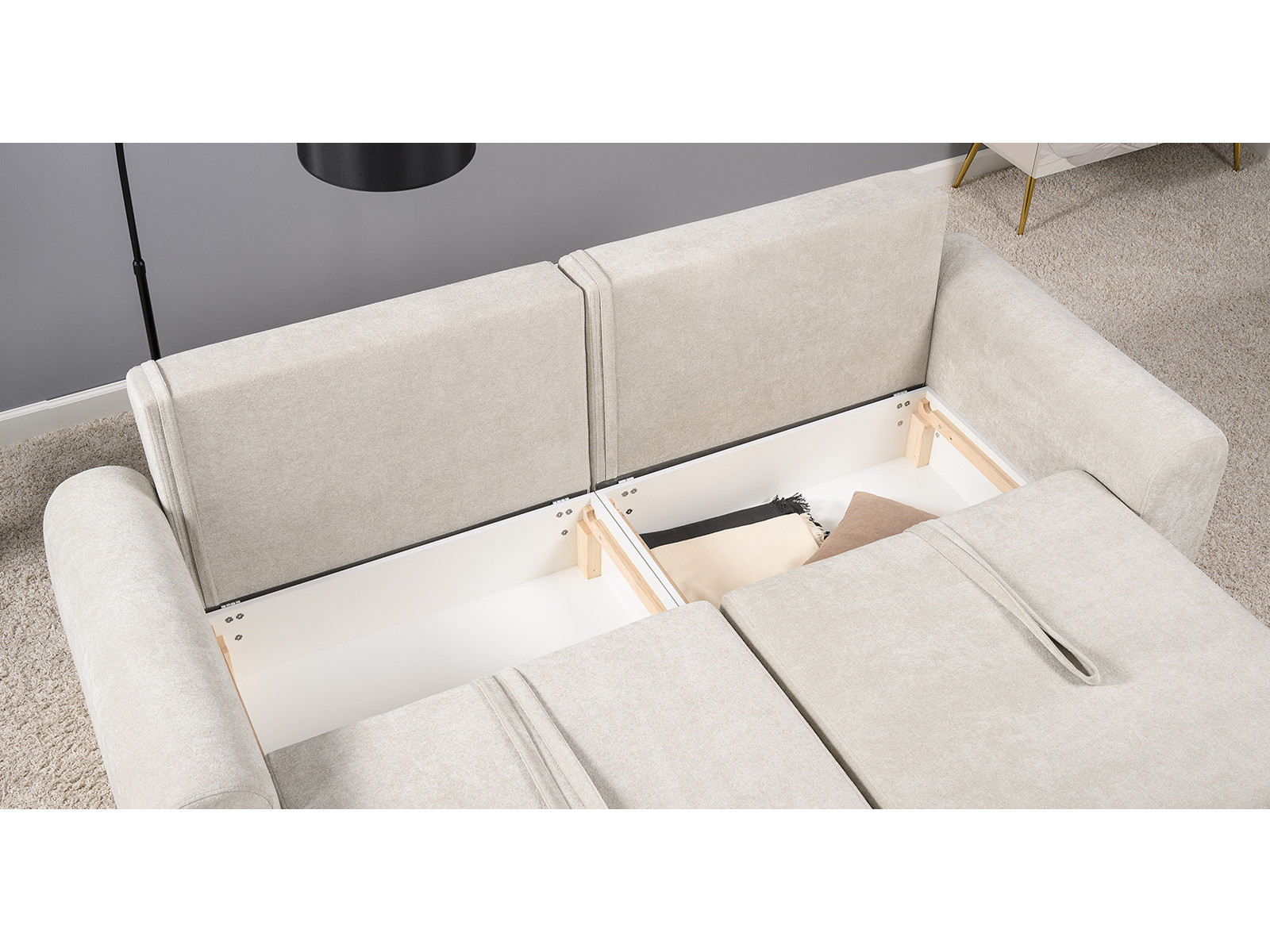 Бельевой ящик: есть с перегородкой по центру (2 отделения) размер отделения (Д x Ш, мм): 972 x 668 x 215