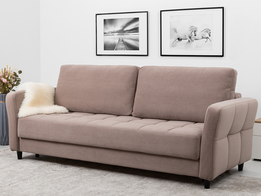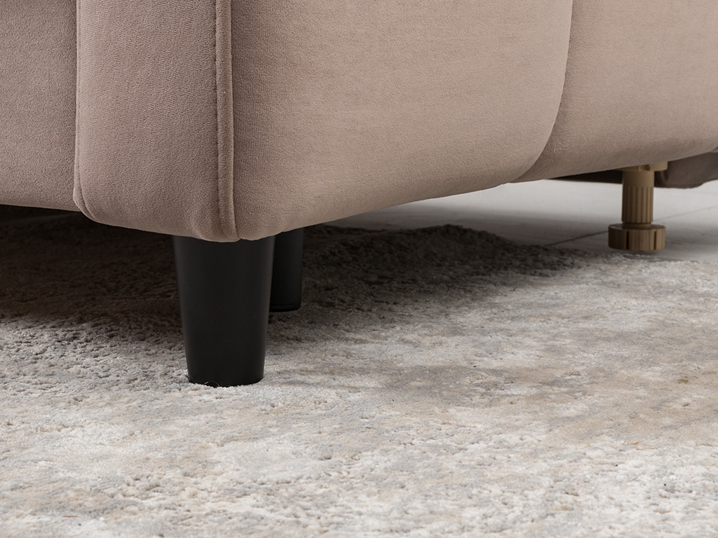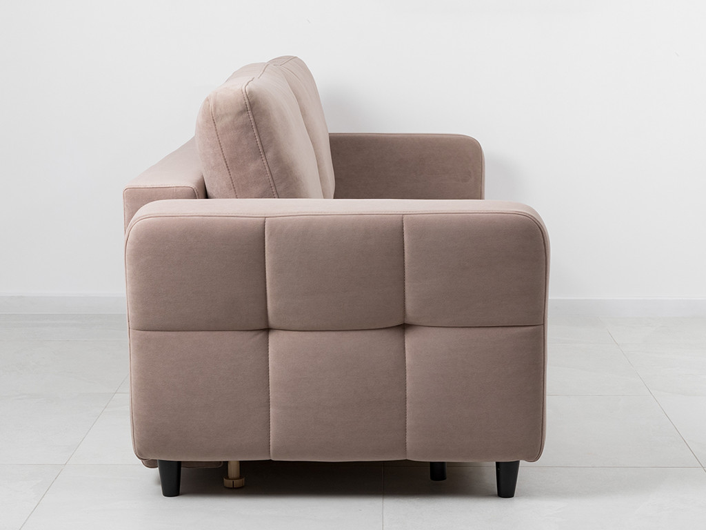 Ровная отстрочка по всему периметру сидения и стежка? создающая эффект пышности выделенных форм. Подлокотники прямые с изгибом в наружные стороны, с выраженной стежкой по лицевой стороне. Стежка на посадочной части дивана.