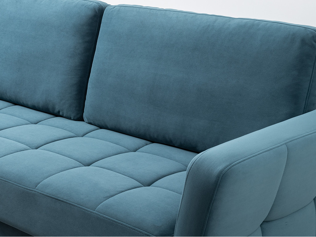 Ровная отстрочка по всему периметру сидения и стежка? создающая эффект пышности выделенных форм. Подлокотники прямые с изгибом в наружные стороны, с выраженной стежкой по лицевой стороне. Стежка на посадочной части дивана.