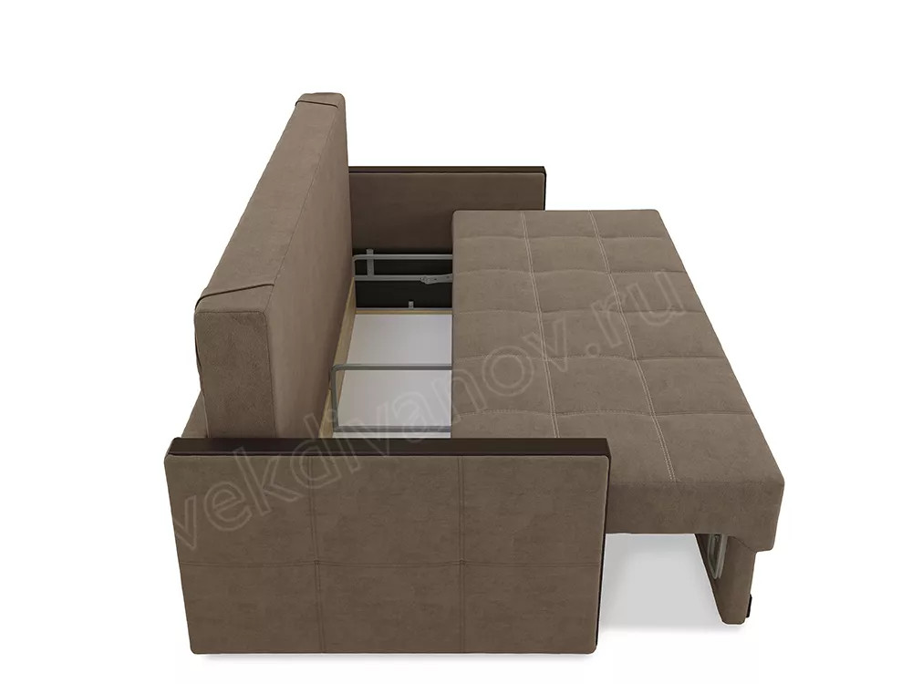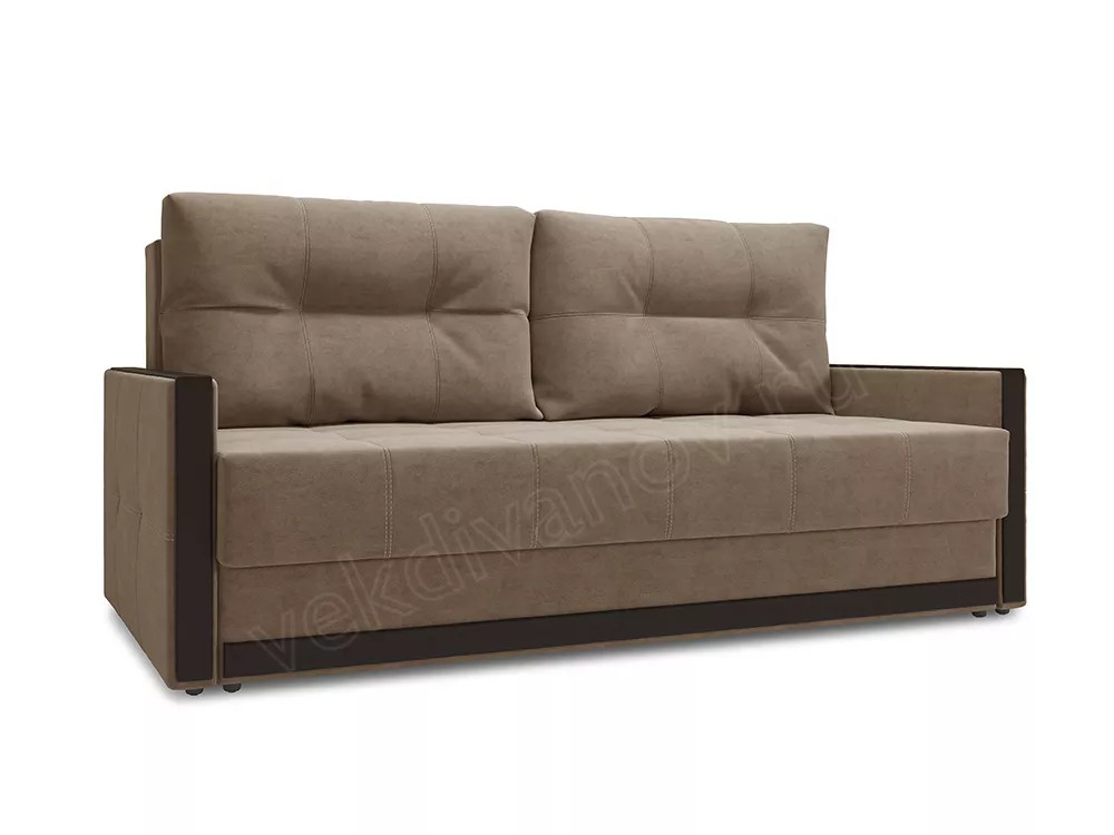 Наполнитель: в основании спального места независимый пружинный блок с дополнительным многослойным покрытием: термовойлок, высокоэластичный пенополиуретан, синтепон; подушки спинки имеют внутренний чехол, наполнитель комбинированный, гипоаллергенный пух «комфорель» с пенополиуретановой крошкой. Накладки – МДФ цвета венге.