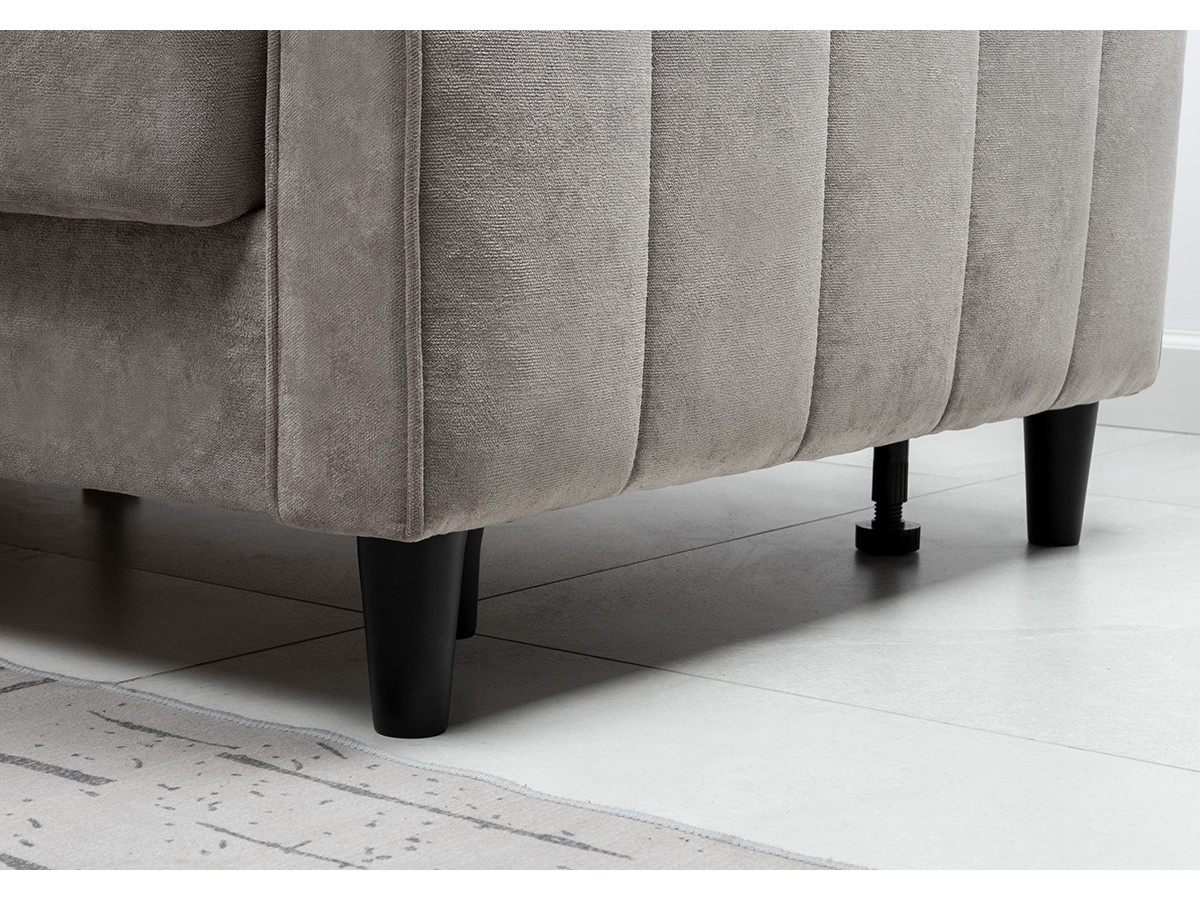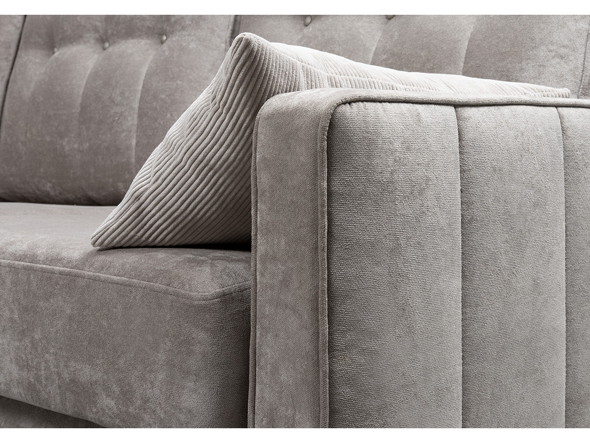 Подушки имеют трапециевидную форму, с утолщением к низу для комфорта посадки. Кант по всему периметру подушек, декоративные утяжки металлическими пуговицами, вертикальная стежка.