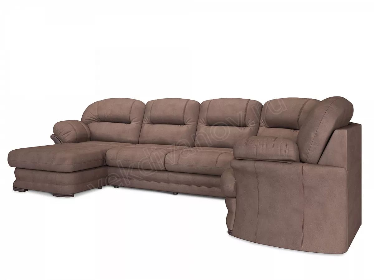 Диван угловой большой П-образный Квин 6 без механизма Ultra Chocolate