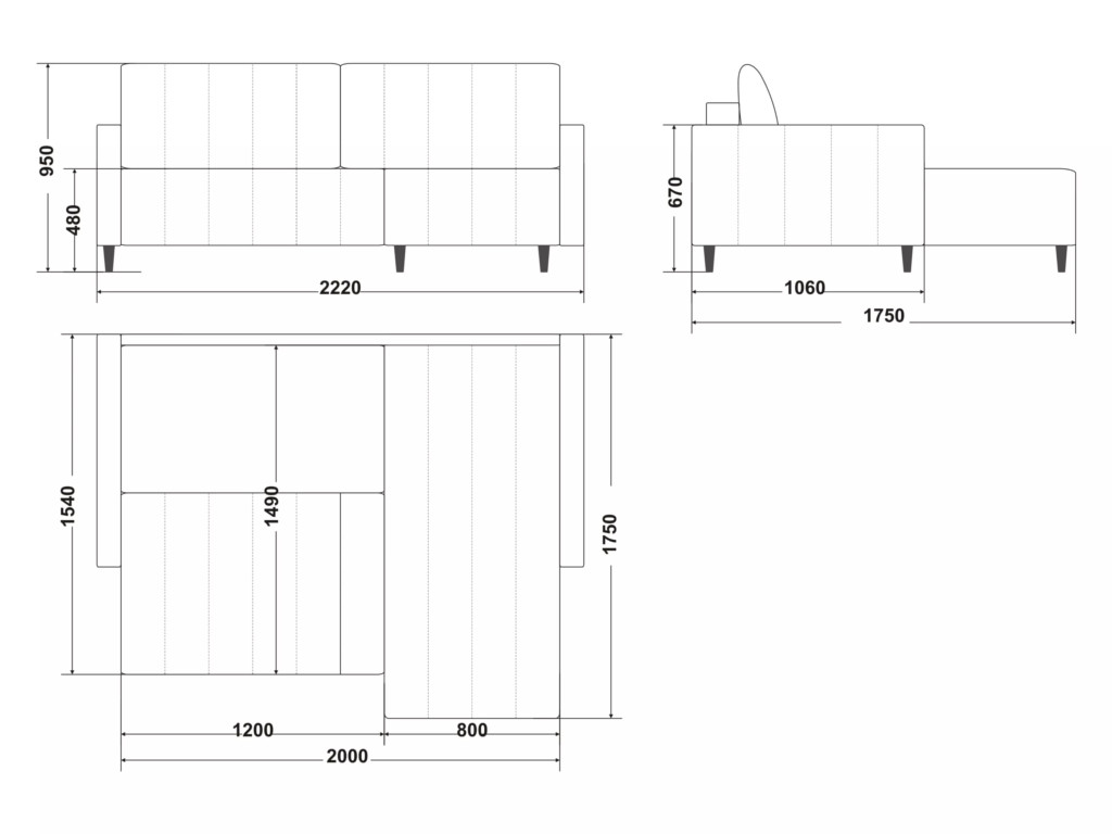 Каркас: выполнен из древесины хвойных пород, фанеры лиственных пород, лам. ДСП и лам. ДВП. В диване короб из ЛДСП, в оттоманке короб отсутствует. Опоры высота 120 мм