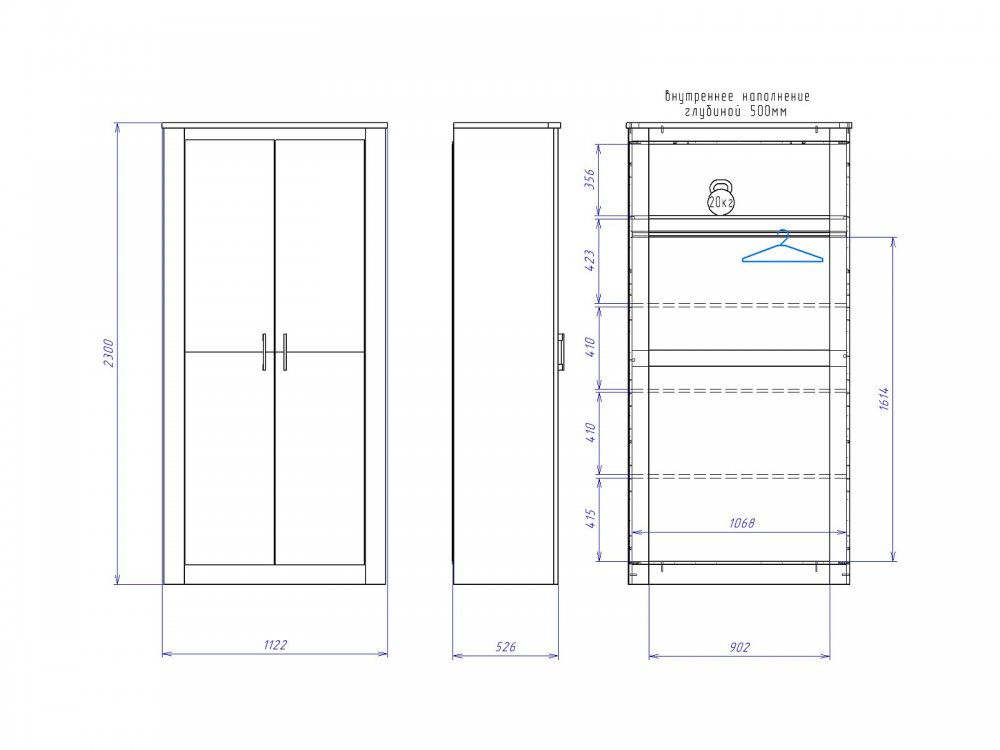 - Шкаф 2-х дверный 2300 Денвер Риббек серый
