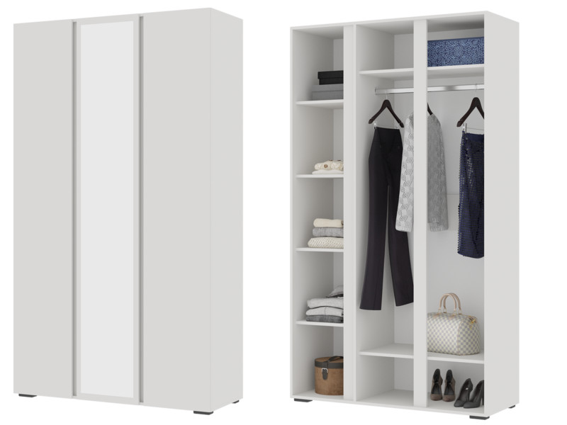 - Шкаф 3х створчатый с зеркалом ШК 02 Хелен Белый шагрень