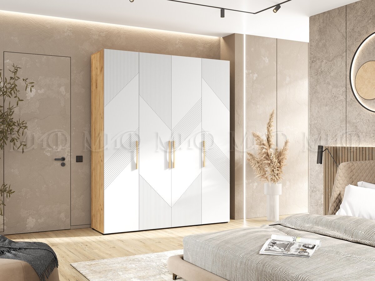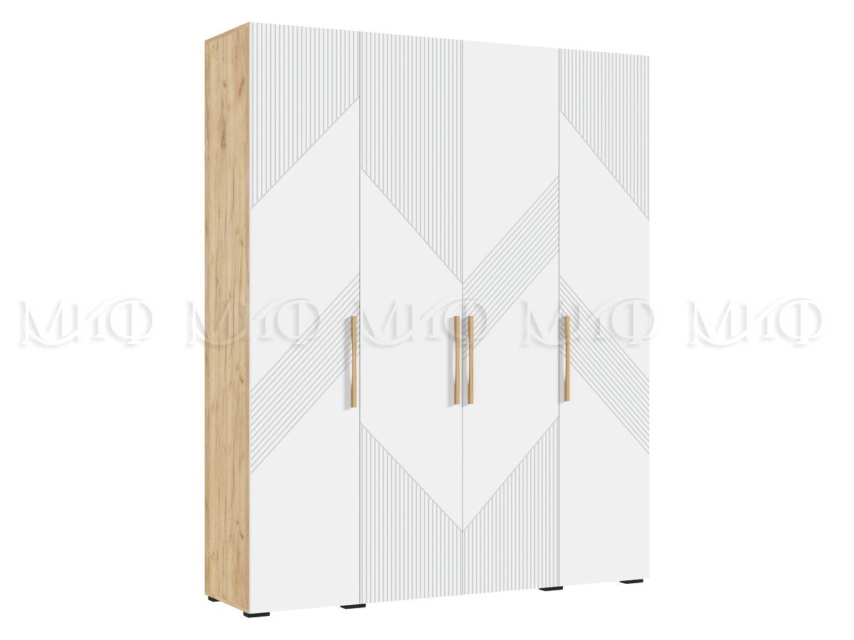 - Шкаф 4-х створчатый (1800) Ирис Браш Вайт, Дуб Крафт
