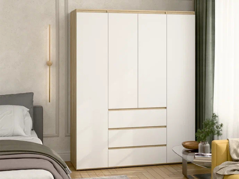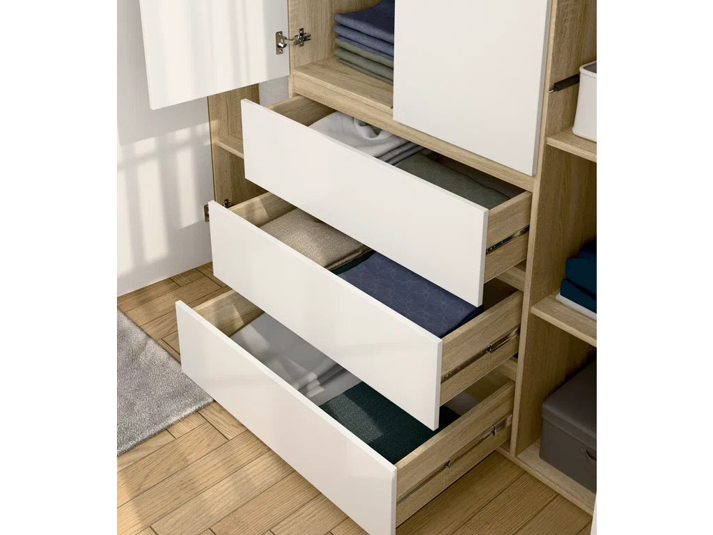 - Шкаф 4-хстворчатый с 3-мя ящиками Прайм сонома/белый
