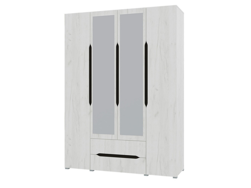- Шкаф 4х створчатый Вега с зеркалами Крафт белый