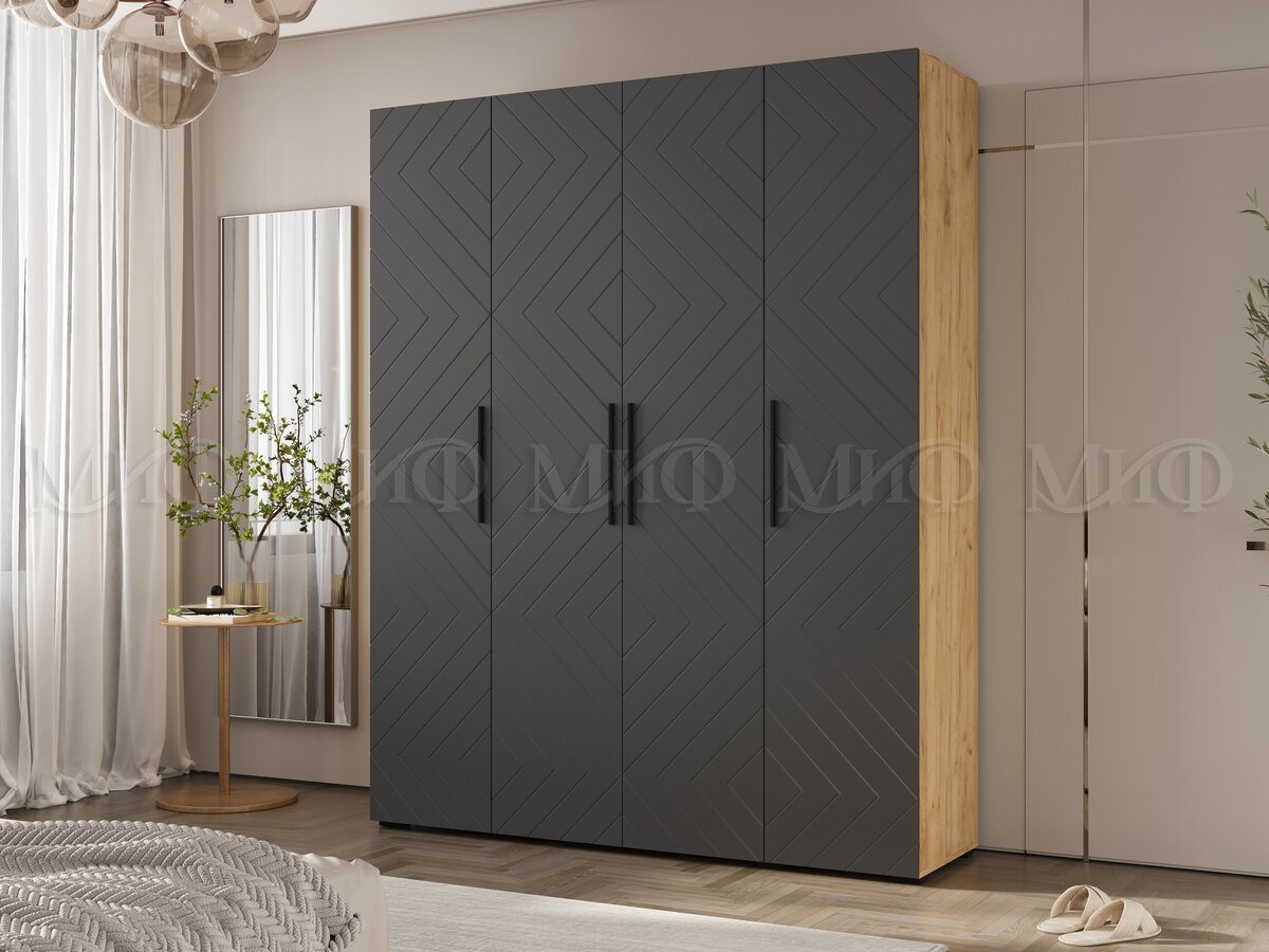 - Шкаф четырехстворчатый (1800) Флэш Браш Графит, Дуб Крафт