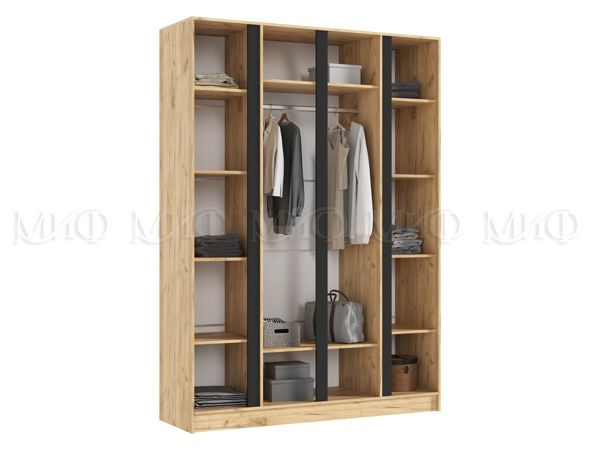- Шкаф четырехстворчатый Келвин (1600) Белый Глянец, Дуб Крафт-вставка черная