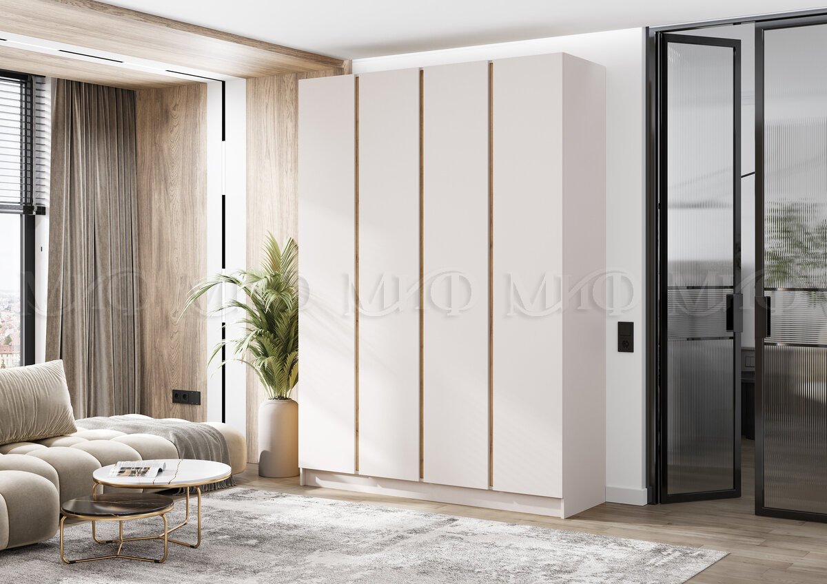 - Шкаф четырехстворчатый Келвин (1600) Кашемир-вставка дуб крафт