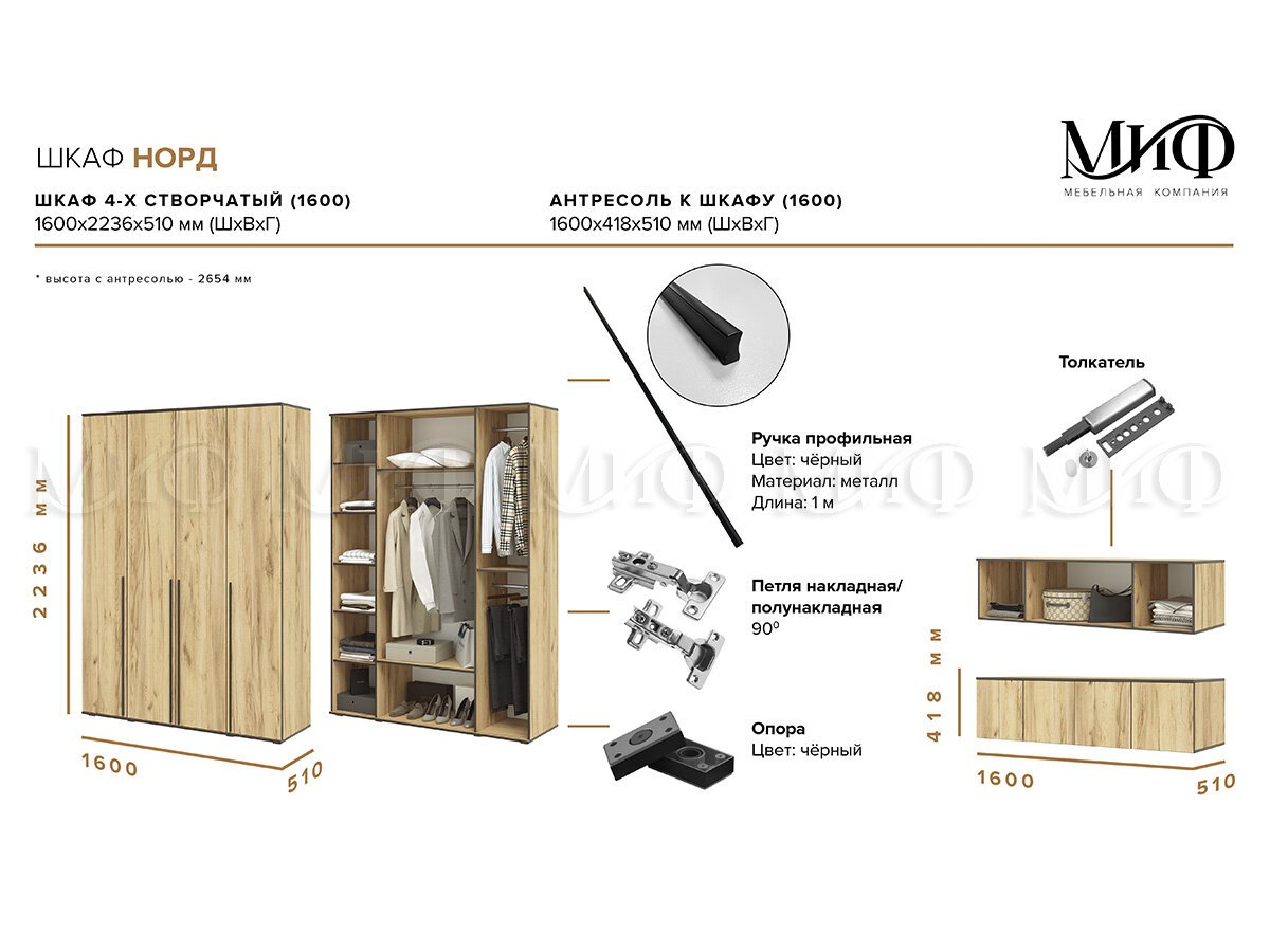 Размеры (Ш*В*Г): 1600*2236*510 мм