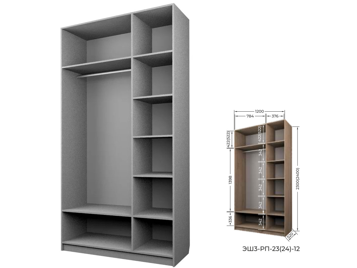 Комплект: ЭШ3-РП-23-12, Шкаф для Одежды + три ЗС-23, Зеркало для шкафов ЭШ 2300 мм