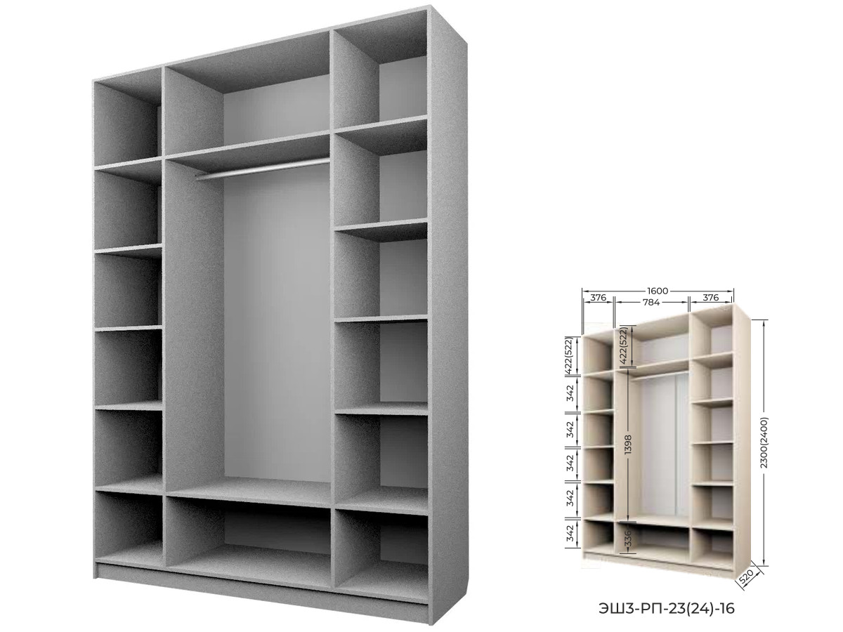 - Шкаф для Одежды Экон ЭШ3-РП-23-16 два зеркала