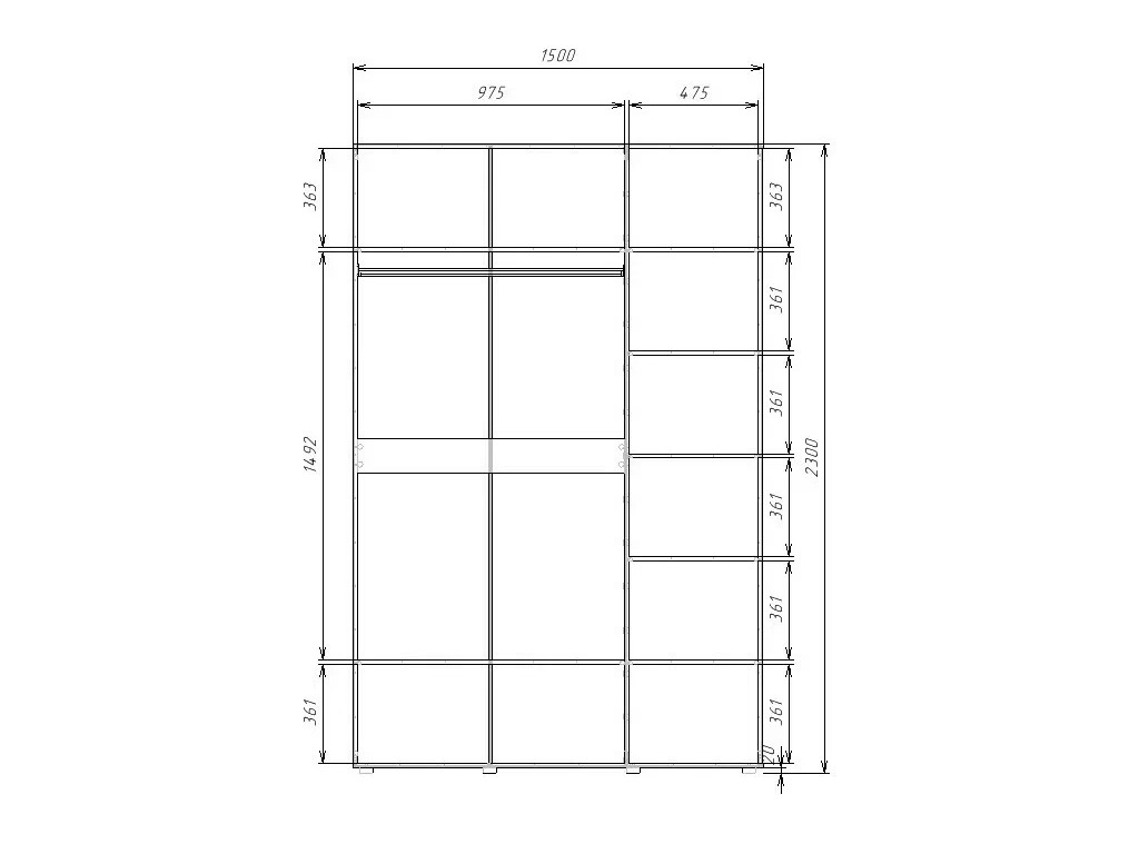 - Шкаф Гранд ГШК/1-23-15-111 (двери тип 1) с тремя зеркалами