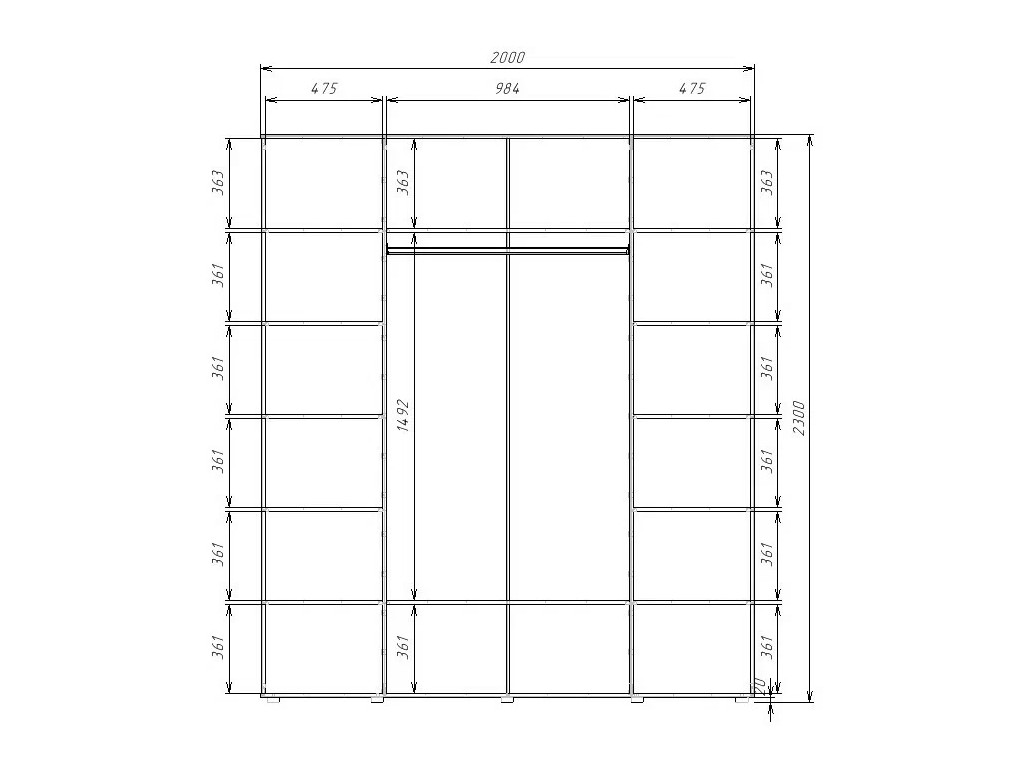 - Высота, мм: 2300