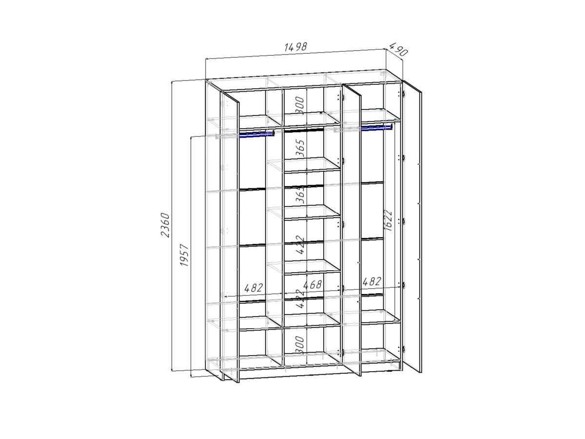 В центральной секции, габаритами Д.468хВ.2254хГ.490мм., расположены полки.