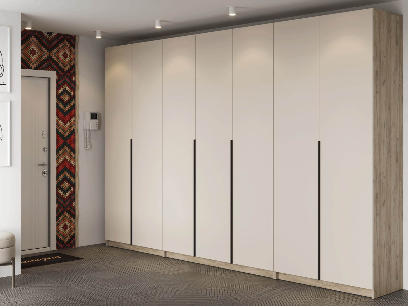 Съёмные полки (расположены по центру секции с полками) ИМЕЮТ ЦВЕТ ФАСАДА.