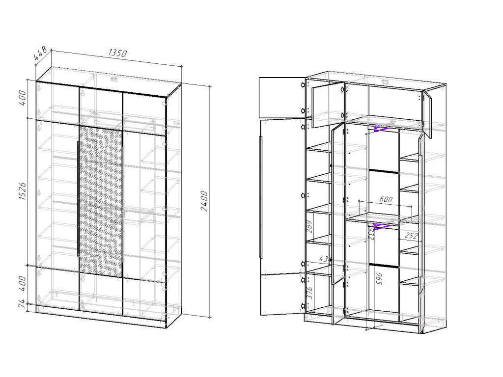 Габаритные размеры: Д.1350 х В.2400 х Г.455 мм