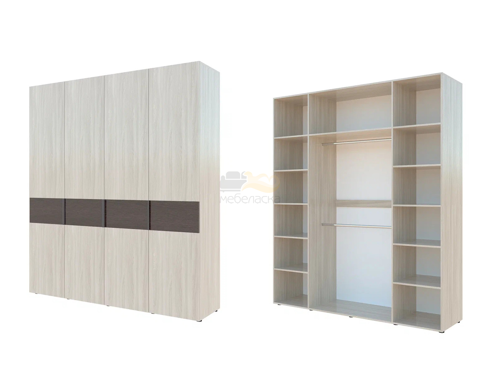 - Шкаф комбинированный с полками по краям и 2 штангами в центре Гранд ГШК/2-23-20-3333