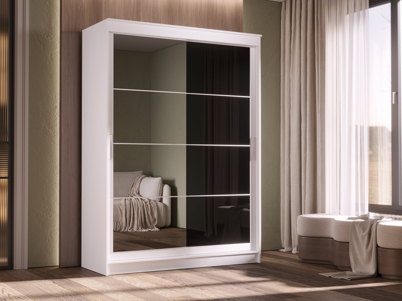 Шкаф-купе Гранд-1 1600 Белый гладкий-двери Зеркало-Лакобель черный