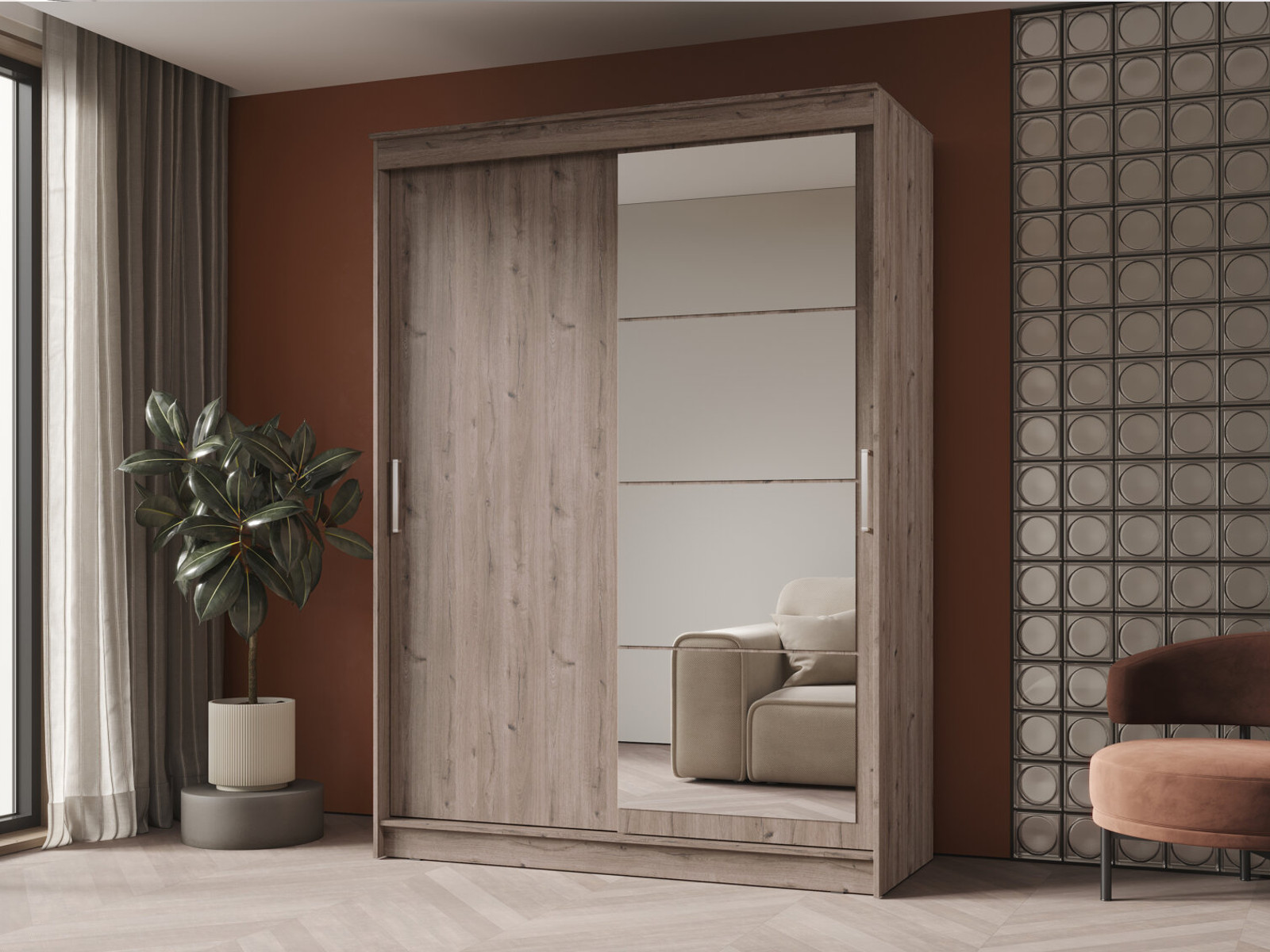 - Шкаф-купе Гранд-1 1600 Дуб Горный-двери Зеркало-ЛДСП