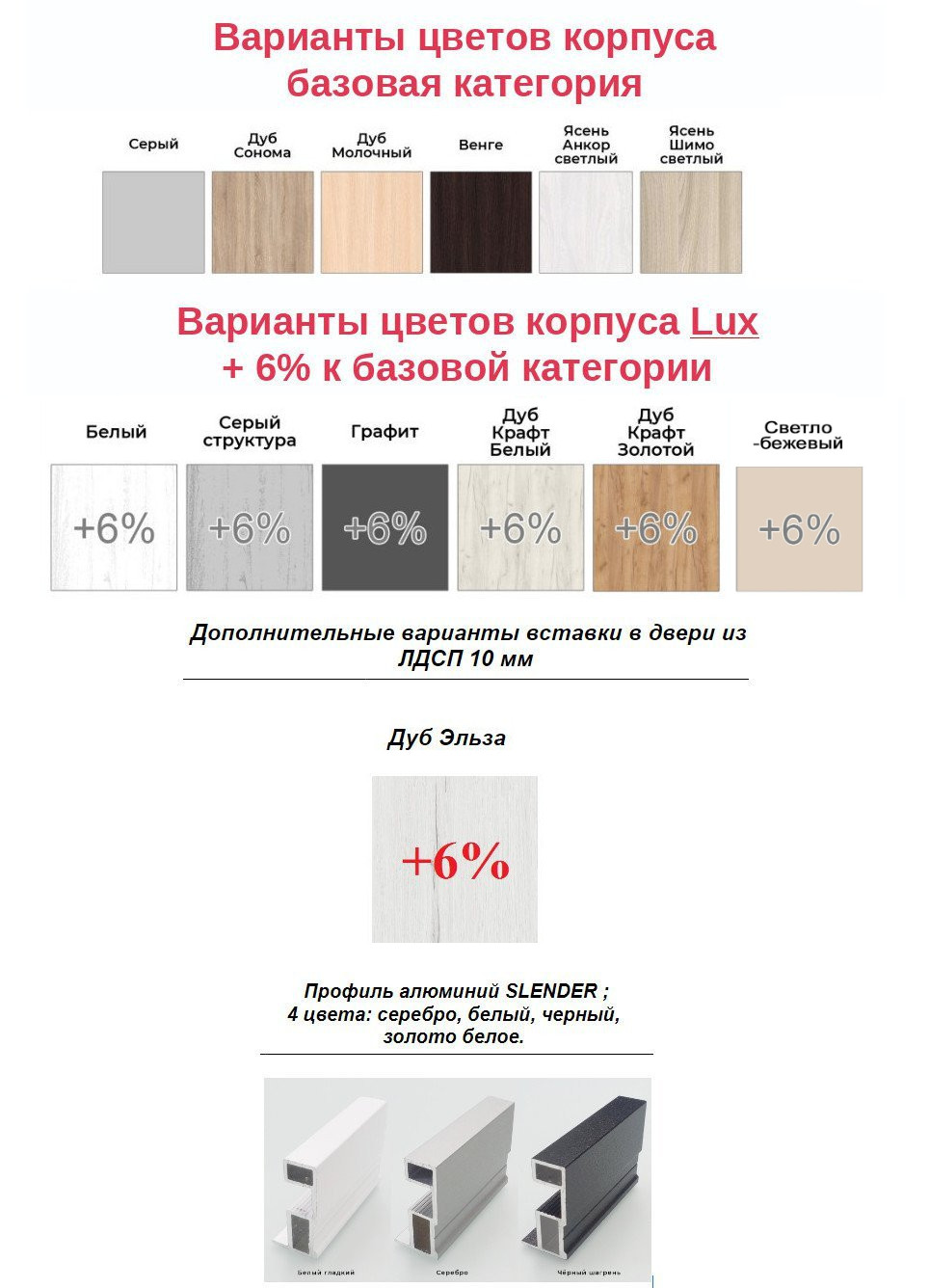 Профиль алюминий SLENDER: 4 цвета: серебро, белый, черный, золото белое.