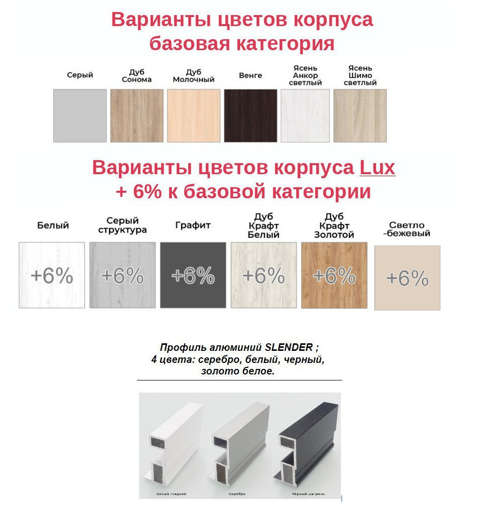 Профиль алюминий SLENDER: 4 цвета: серебро, белый, черный, золото белое.