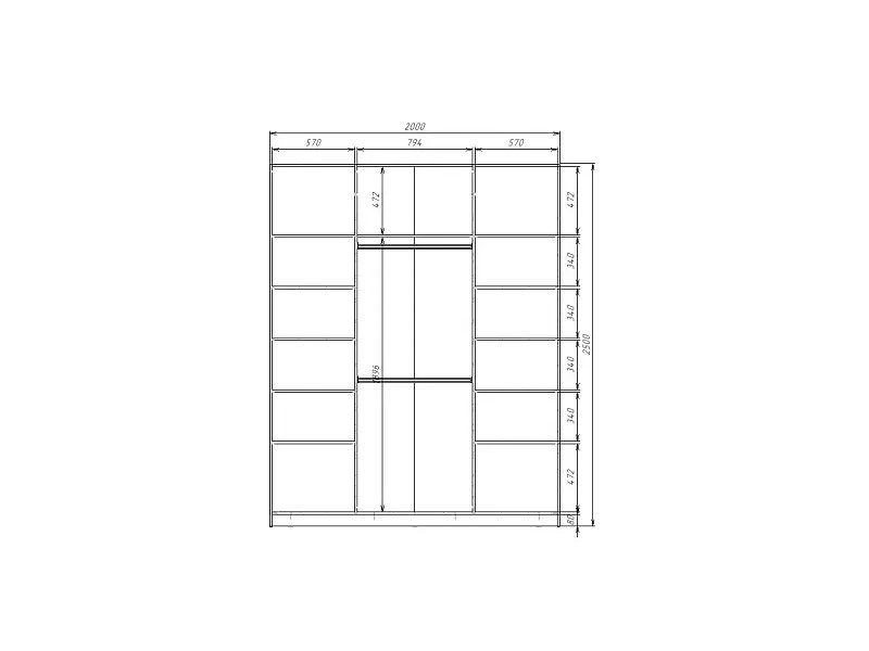 - Шкаф-купе Max МШ-25-6-20/2-99 пленка Oracal темно-серая