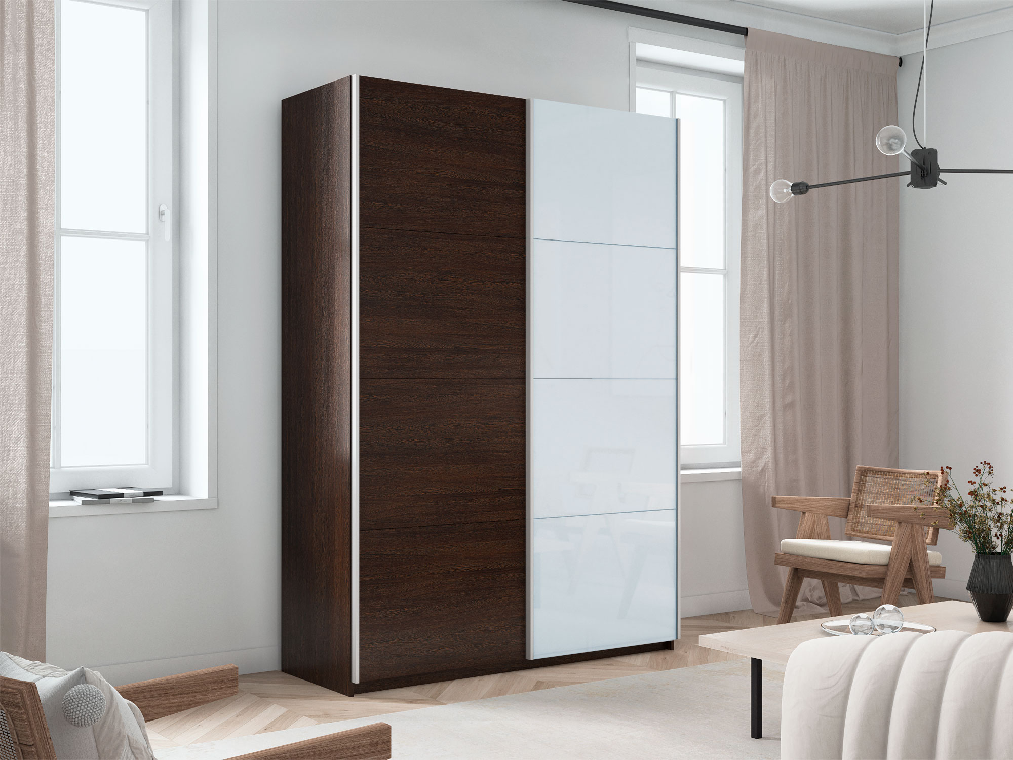 - Шкаф-купе Прайм 2-х дверный 1200 ДСП/Стекло Белое Венге