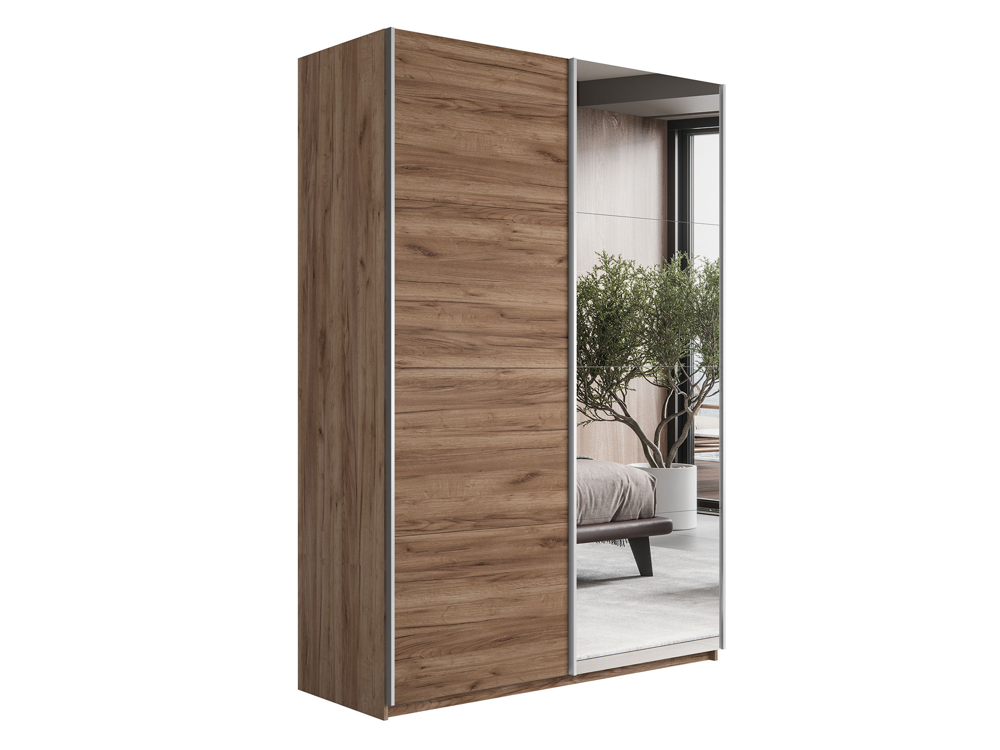 - Шкаф-купе Прайм 2-х дверный 1200 Зеркало/ДСП Крафт табачный