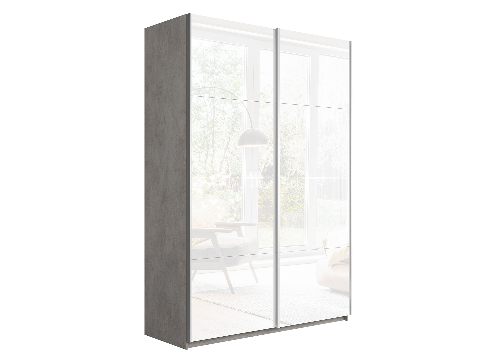 - Шкаф-купе Прайм 2-х дверный 1400 Стекло Белое Бетон