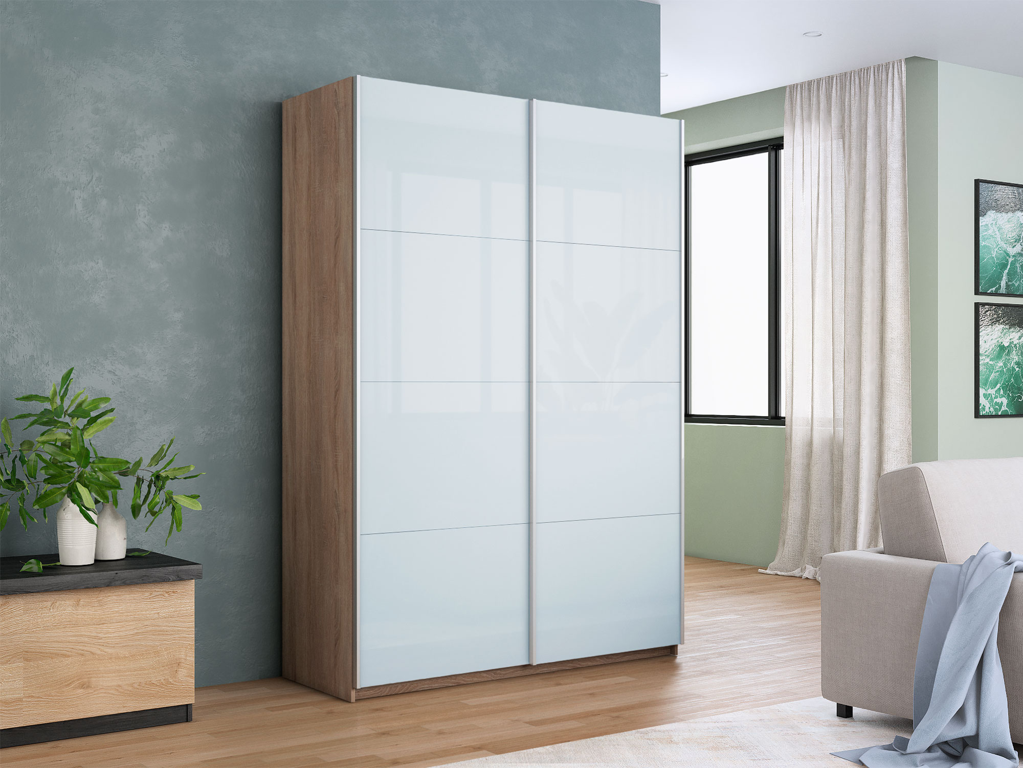 - Шкаф-купе Прайм 2-х дверный 1400 Стекло Белое Сонома