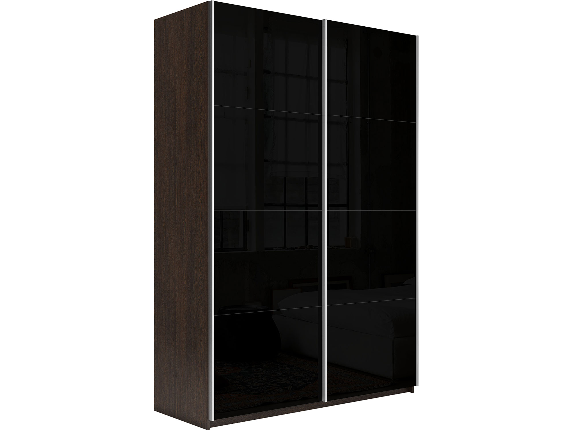 - Шкаф-купе Прайм 2-х дверный 1400 Стекло Черное Венге