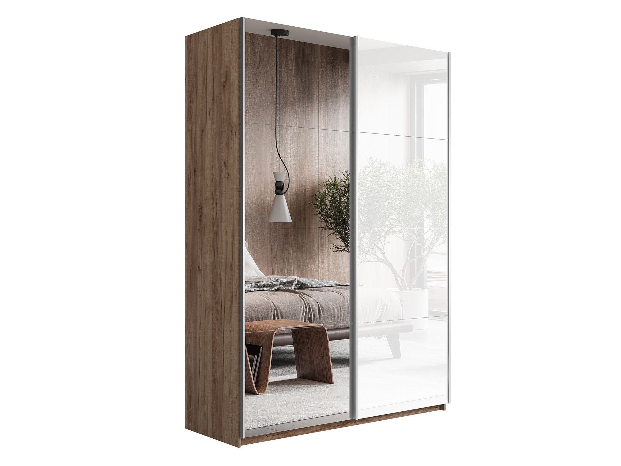 - Шкаф-купе Прайм 2-х дверный 1400 Зеркало/Стекло Белое Крафт табачный