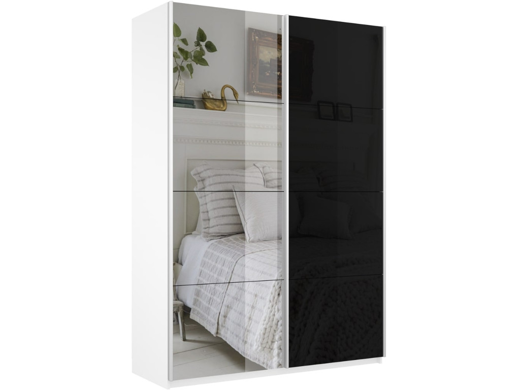- Шкаф-купе Прайм 2-х дверный 1400 Зеркало/Стекло Черное Белый Снег