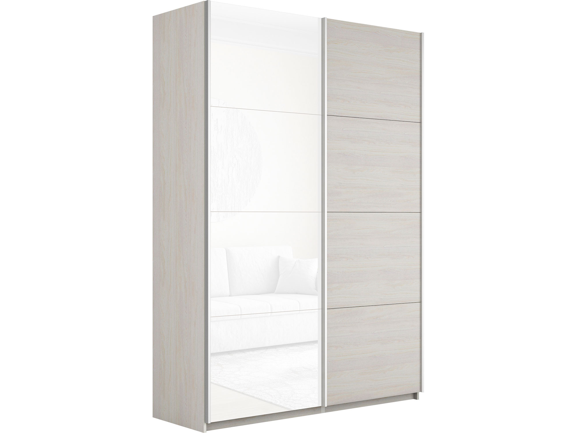 - Шкаф-купе Прайм 2-х дверный 1600 ДСП/Стекло Белое Ясень Анкор Светлый