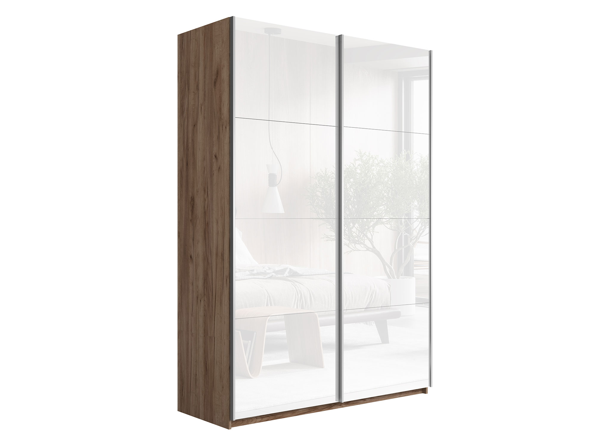 Шкаф-купе Прайм 2-х дверный 1600 Стекло Белое Крафт табачный