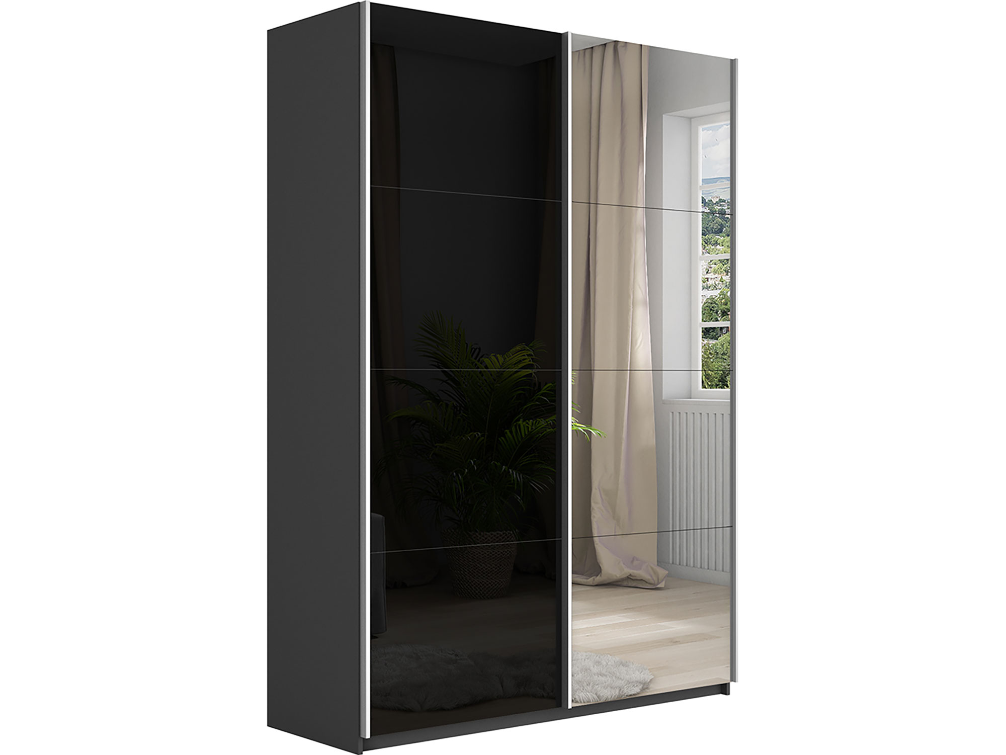 - Шкаф-купе Прайм 2-х дверный 1600 Зеркало/Стекло Черное Серый Диамант
