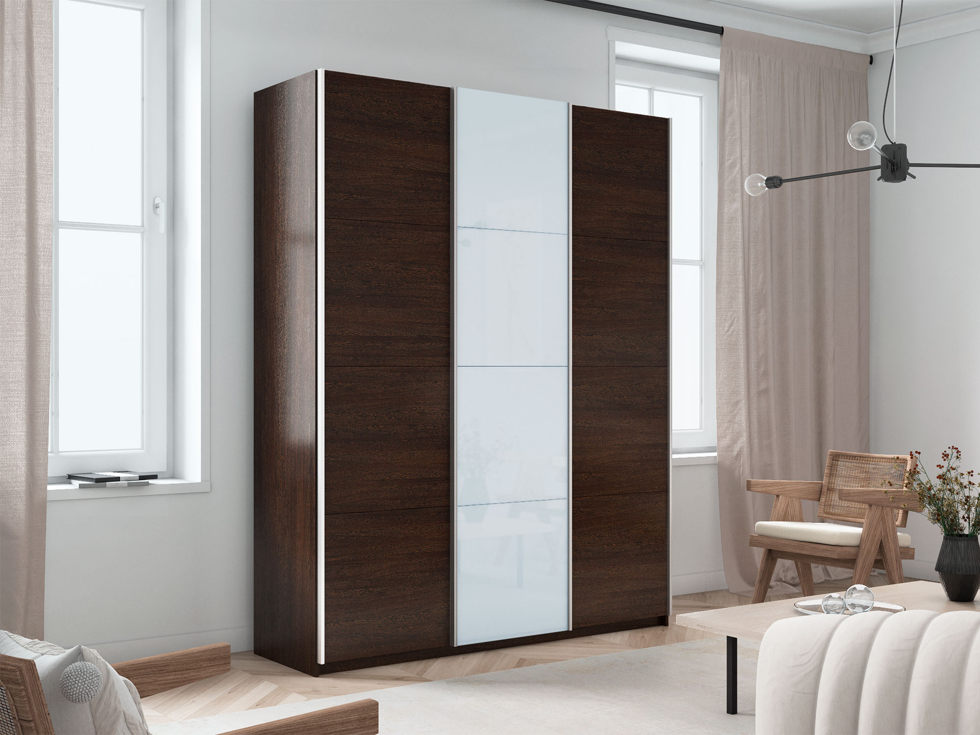 - Шкаф-купе Прайм 3-х дверный 1800 ДСП/Стекло Белое/ДСП Венге