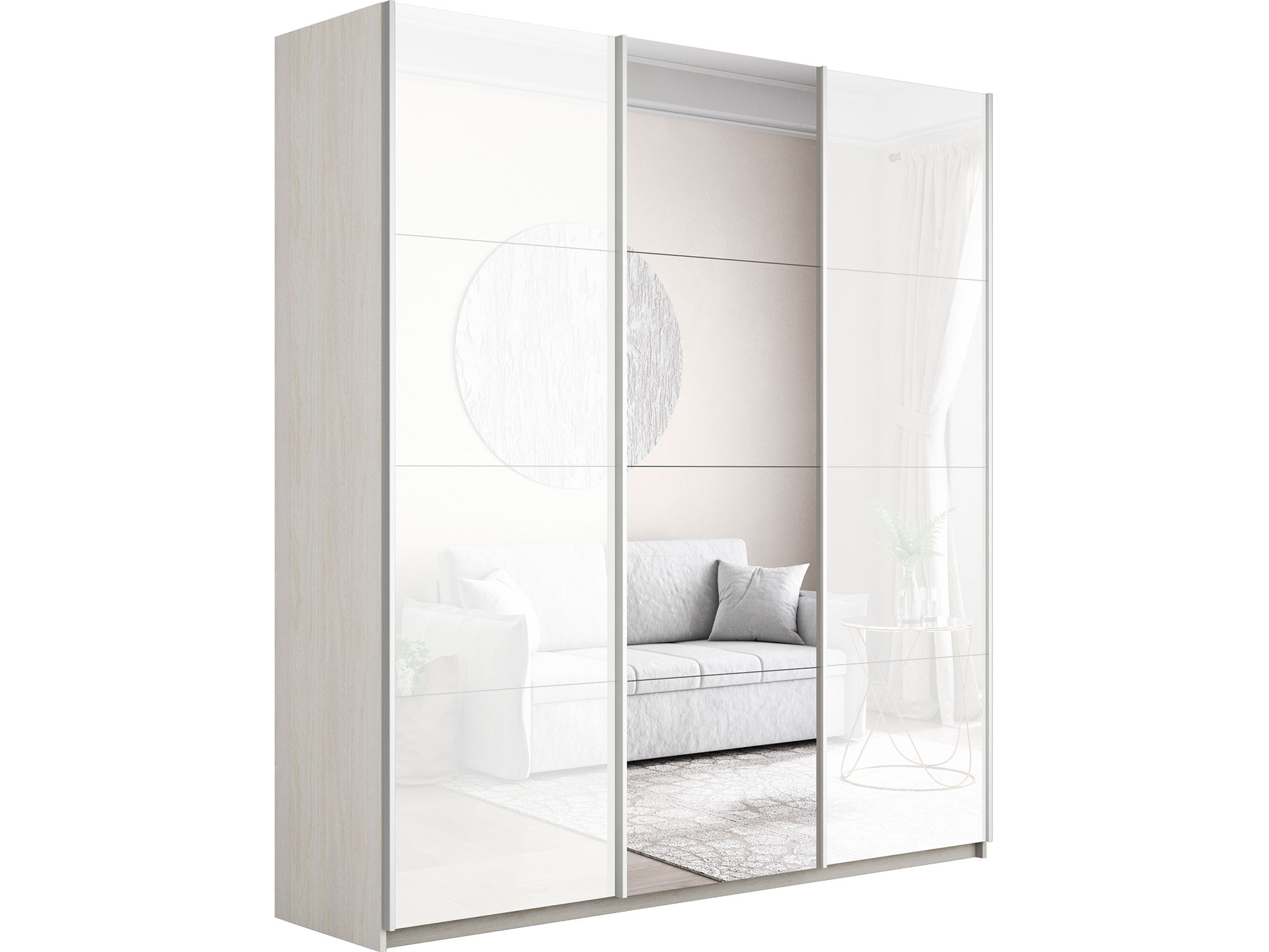 Шкаф-купе Прайм 3-х дверный 1800 два Стекла Белые/Зеркало Ясень Анкор Светлый