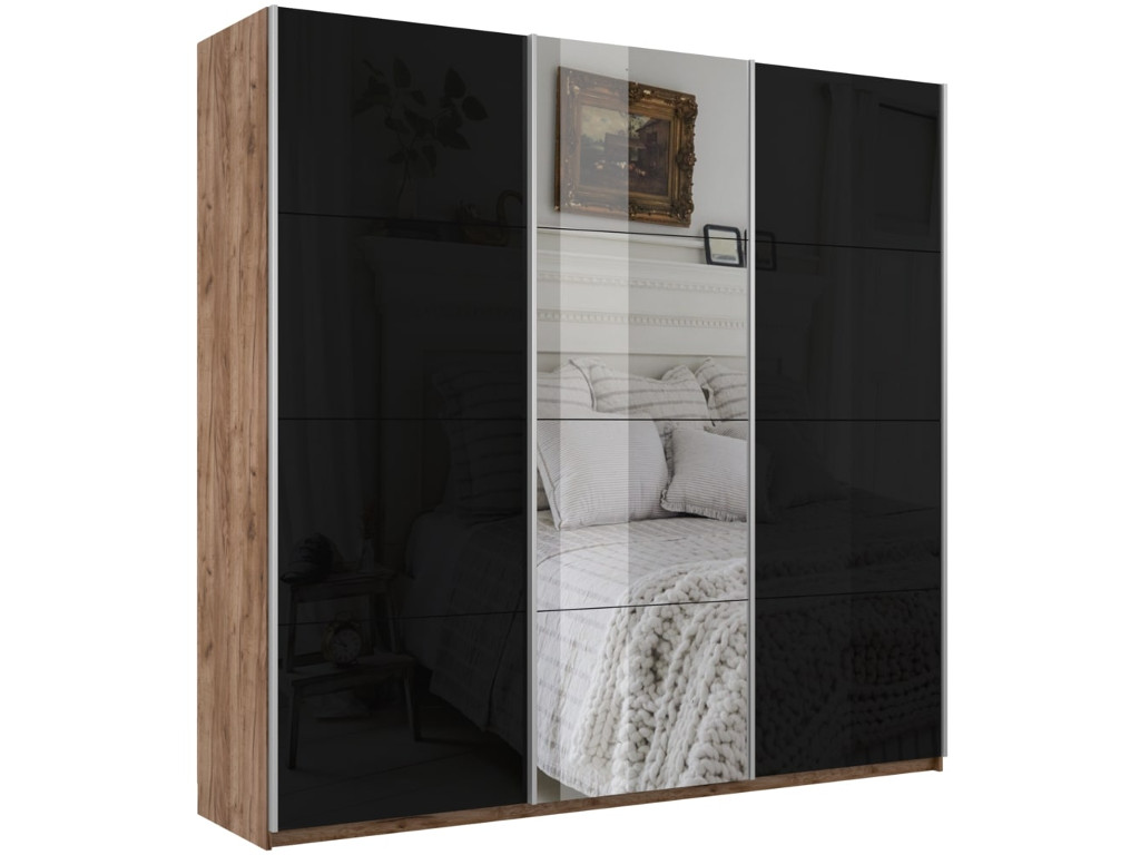 - Шкаф-купе Прайм 3-х дверный 1800 два Стекла Черные/Зеркало Крафт табачный