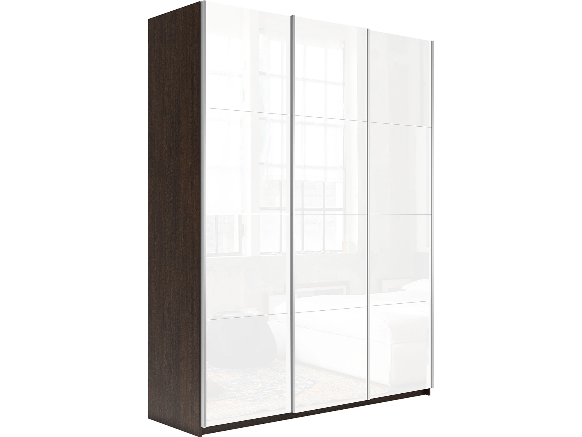 - Шкаф-купе Прайм 3-х дверный 1800 три стекла белые Венге